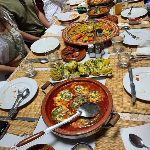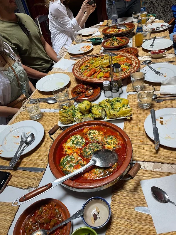 • Enjoy the meal you’ve prepared together, served with fresh Moroccan salads and bread.