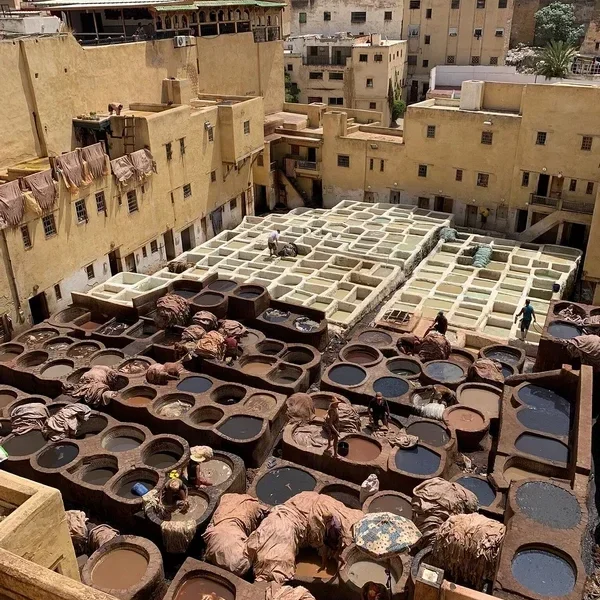 Guided visit of Fes medina, Al Quaraouiyine University, tanneries, then continue to Rabat for Hassan Tower and Mausoleum of Mohammed V.
