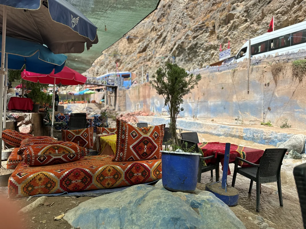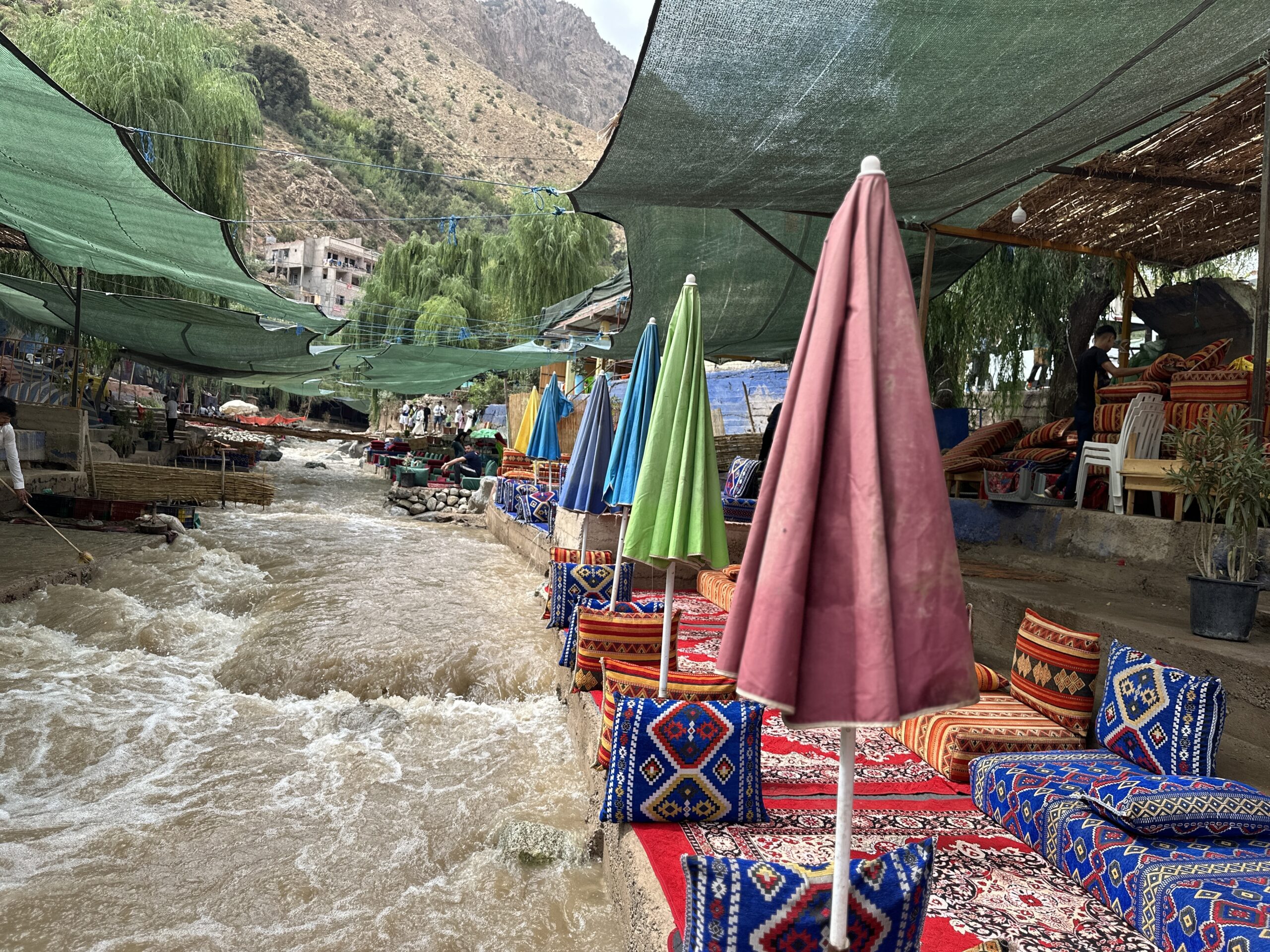 - Lunch at a riverside restaurant—fresh tagines, couscous, or grilled meats with mountain views.